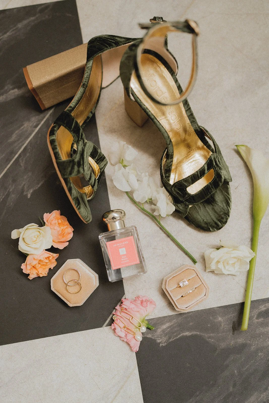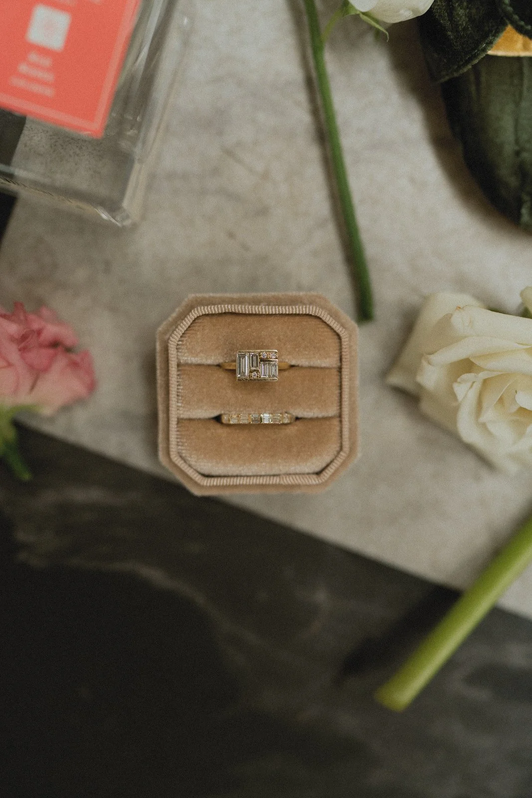 The day began with meaningful details — velvet heels, a Jo Malone signature scent, and heirloom-inspired rings tucked into vintage velvet boxes. Every element was chosen with intention, setting the tone for a wedding that blended style, personality, and love in the most seamless way.