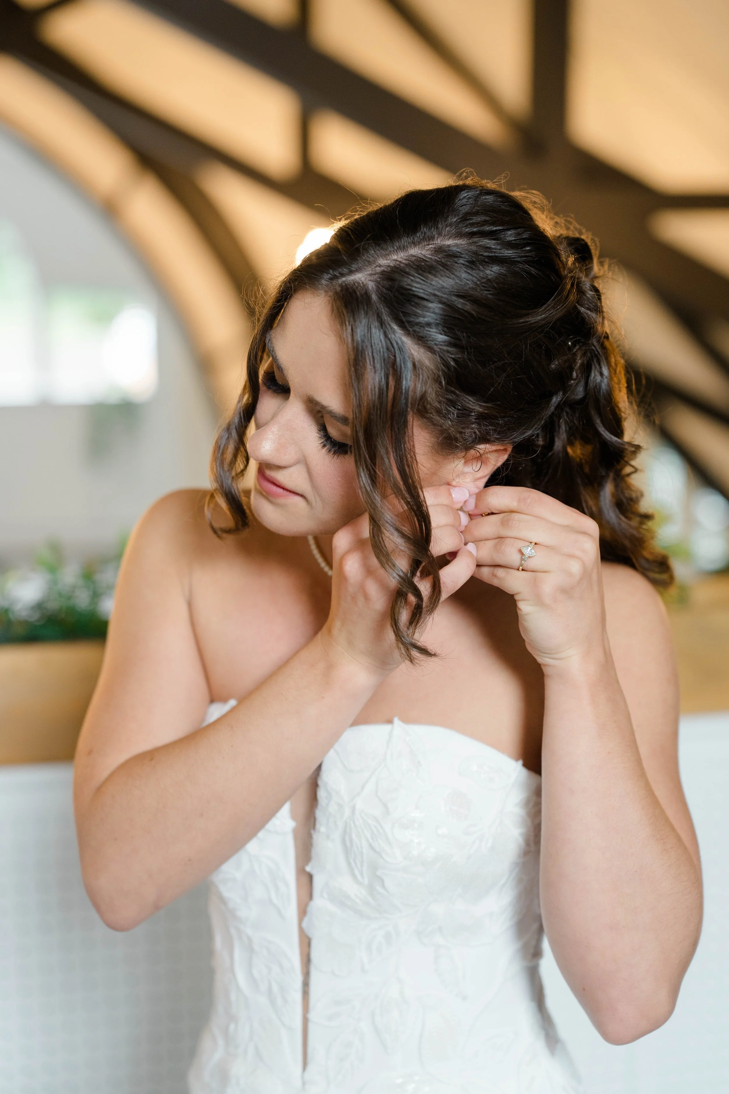 Their day began surrounded by their closest family and friends, creating a relaxed, love-filled atmosphere. Casey’s bridal details reflected a soft and timeless style, with floral invitations and delicate jewelry that set the tone for the celebration.