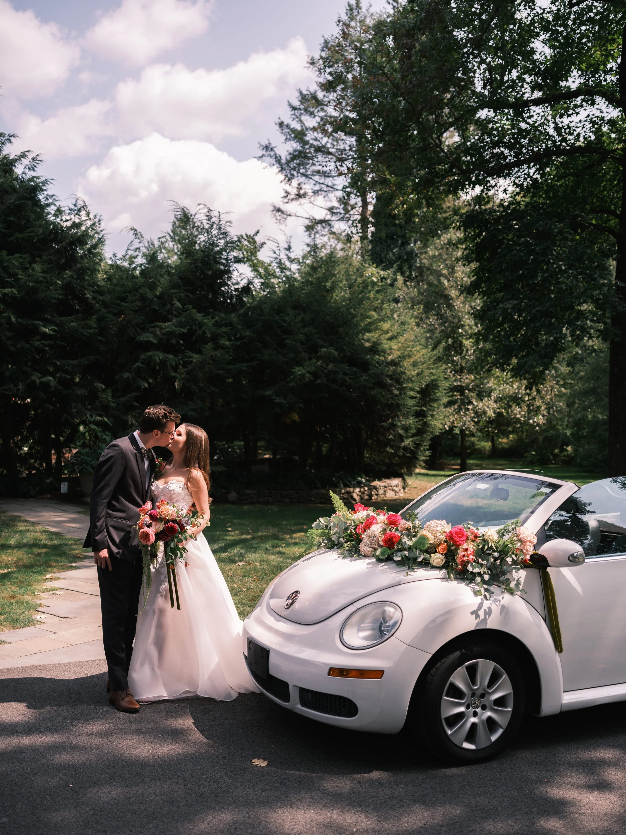 One of the most unforgettable moments? The couple’s getaway in a classic white convertible adorned with fresh florals — a picture-perfect ending to a magical day.
