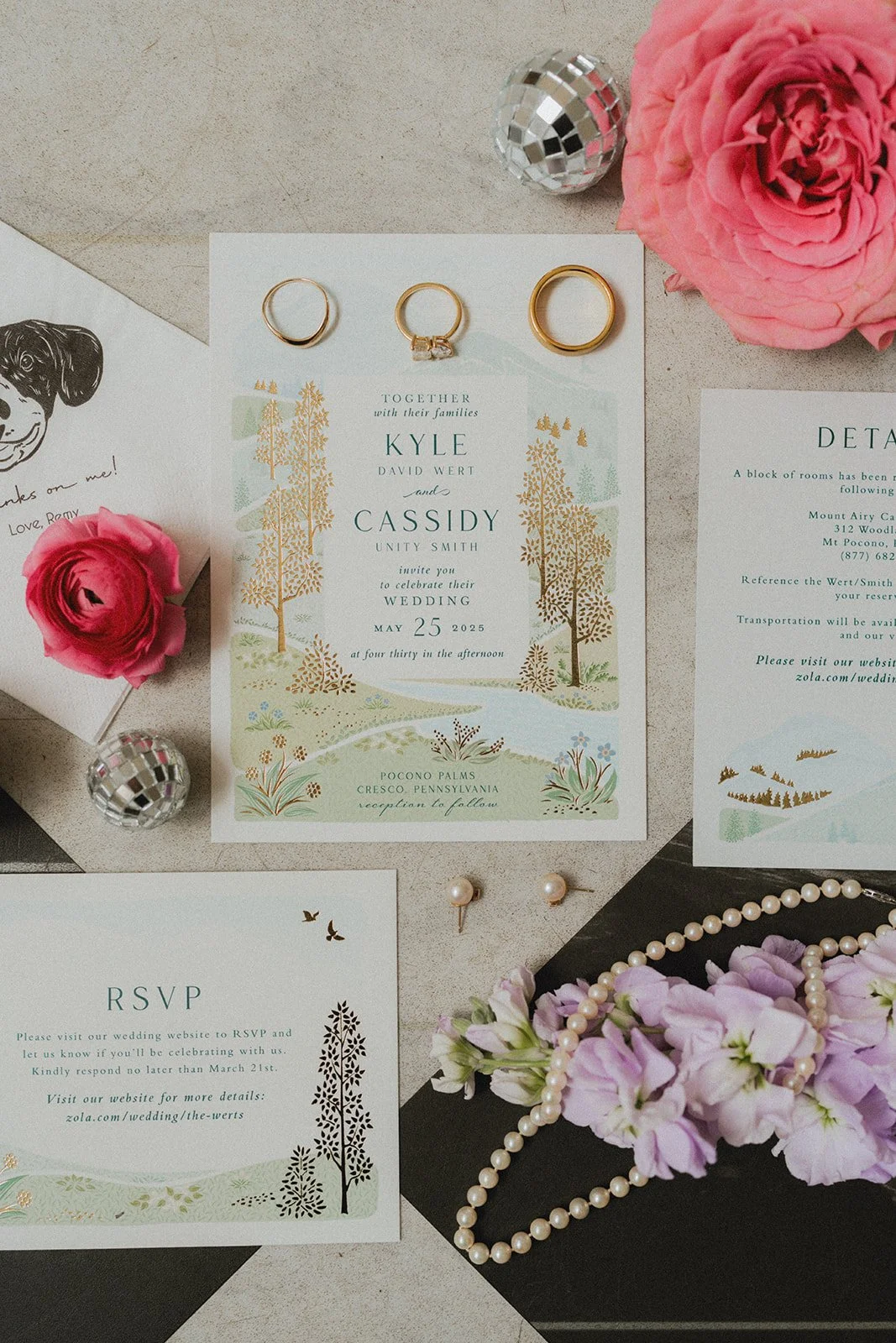 Cassidy & Kyle Venue: Pocono Palms - Cresco, PA.Planner: KE CoordinationPhotographer: Rachel Bond PhotographyFlowers: Kraft & Company HMUA: BB Decheine SalonCatering: Roots CateringBar Services: Served with a Twist Transportation: Rohrer Bus Cake: Electric City BakehouseRentals: Party Rental LTD